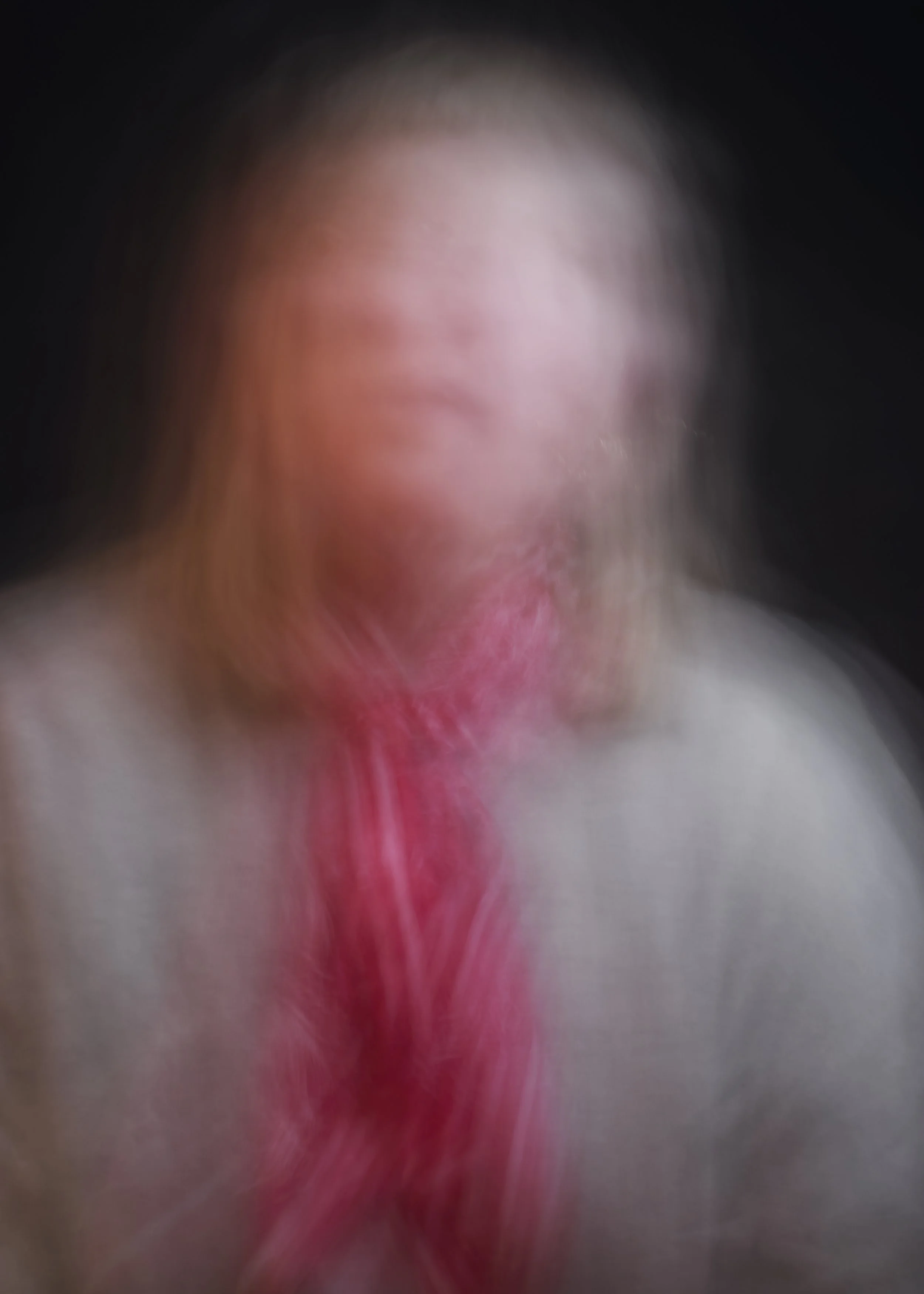 This series explores the beauty of impermanence through delicate, ethereal portraits that exist on the edge of visibility—interrupted by a hazy screen, prolonged exposures, and soft, shifting forms. The images evoke the quiet passage of time, reminiscent of early photographic portraits, where the sitter’s presence lingers just beyond clarity.